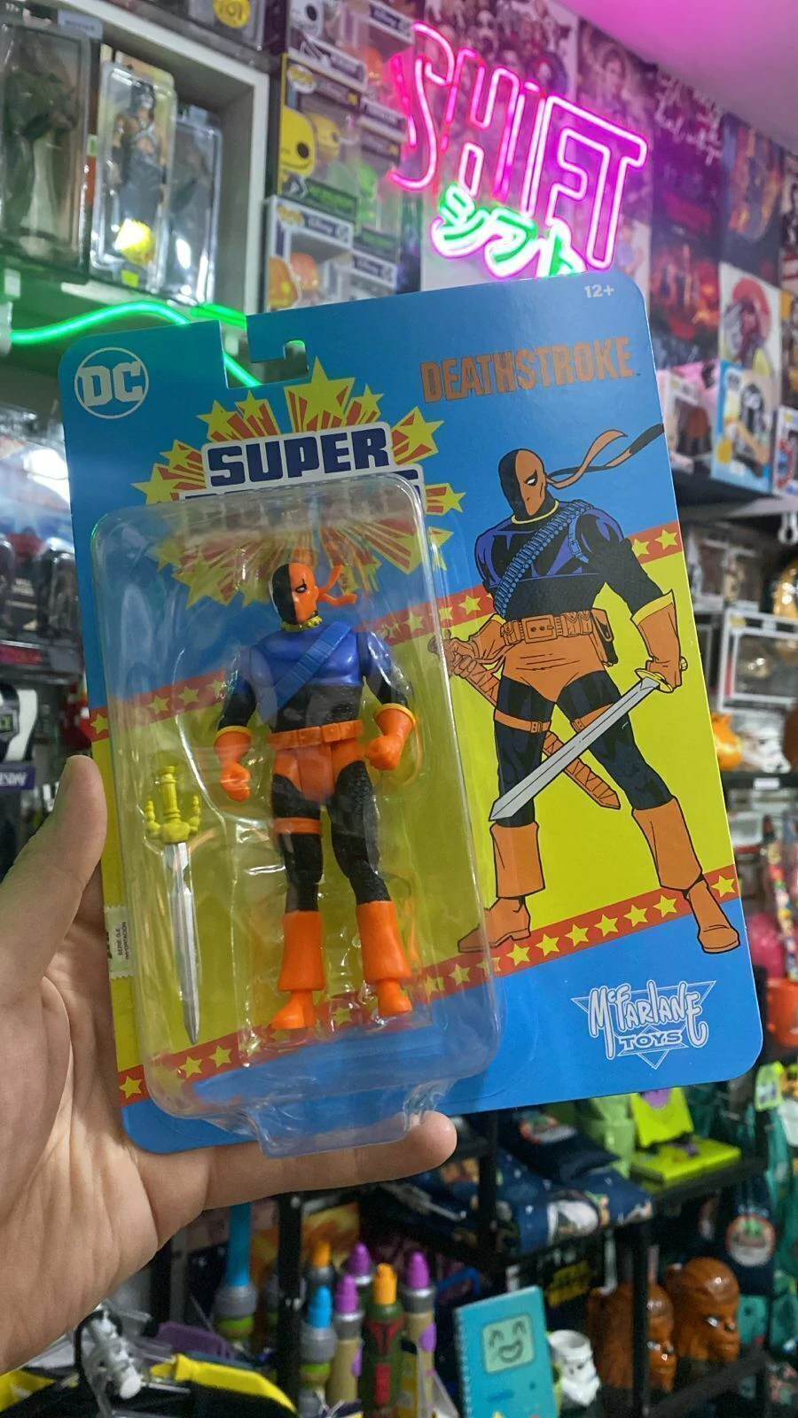 Slade Wilson es un mercenario y asesino a sueldo que no duda en cruzar los límites para cumplir su trabajo, sin importar dónde se tracen. Un formidable agente del ejército estadounidense, el coronel Slade Wilson aceptó someterse a un proceso experimental que incrementó sus capacidades mentales y físicas a niveles sobrehumanos. En lugar de continuar su carrera como soldado, Slade se convirtió en el mercenario enmascarado Deathstroke. Esta decisión resultó en el abandono de su esposa y en la lesión permanente de su hijo Joseph, además de la muerte de su hijo Grant, quien intentó emular a Slade. Continuando el legado de la línea DC Super Powers de los 80, llega una nueva generación de tus héroes y villanos favoritos en la clásica serie nostálgica que todos amamos.