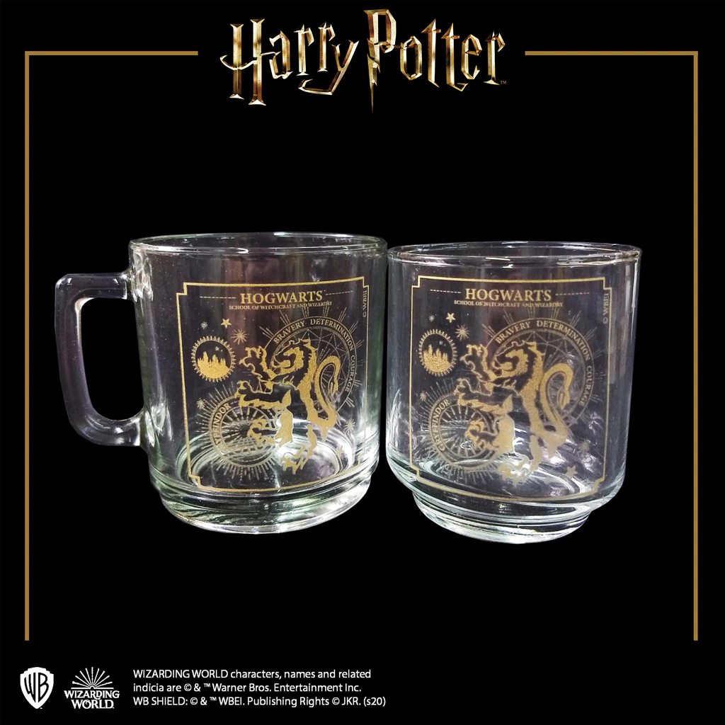 Taza + vaso de vidrio con escudo dorado de Slytherin